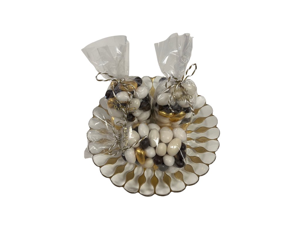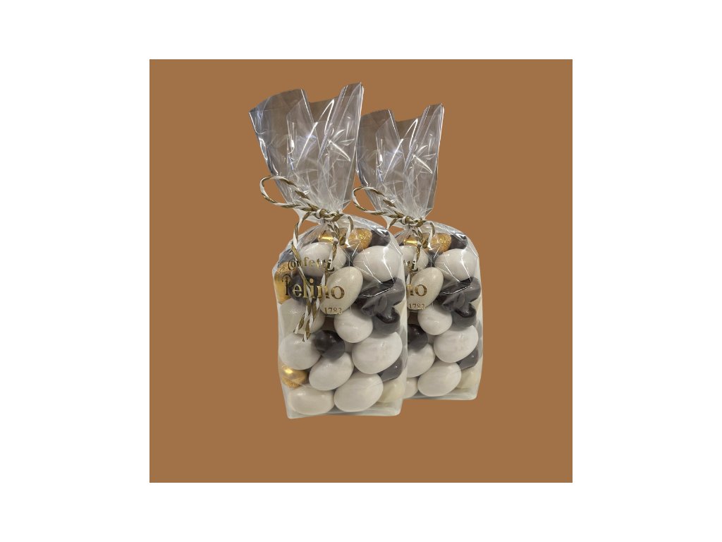 Mix čokoládových bonbonů s mandlemi a kávovým zrnem. Může obsahovat bonbony s tímto složením: mandle, kávové zrno, čokoláda (kakaová hmota, kakaové máslo), sušené mléko, emulgátor: sójový lecitin, aroma, cukr, zahušťovadlo: arabská guma, potah: karnaubský vosk. Barviva: E100. Neobsahuje lepek. Může obsahovat stopy arašídů a jiných ořechů. Skladujte v suchu při pokojové teplotě. Vyrobeno v Itálii.