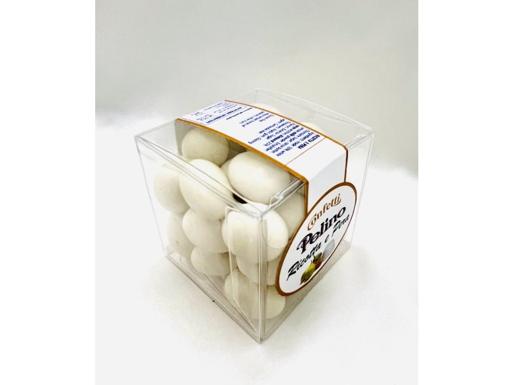 Složení: 50% bílá čokoláda (cukr, kakaová máslo, sušené mléko. Emulgátor: sójový lecitin, příchutě) Mandle 25%, příchutě. Povrch: cukr. Zahušťovadlo: arabská guma, potah: karnaubský vosk Neobsahuje lepek. Může obsahovat stopy arašídů a jiných ořechů. Skladujte v suchu při pokojové teplotě. Vyrobeno v Itálii.